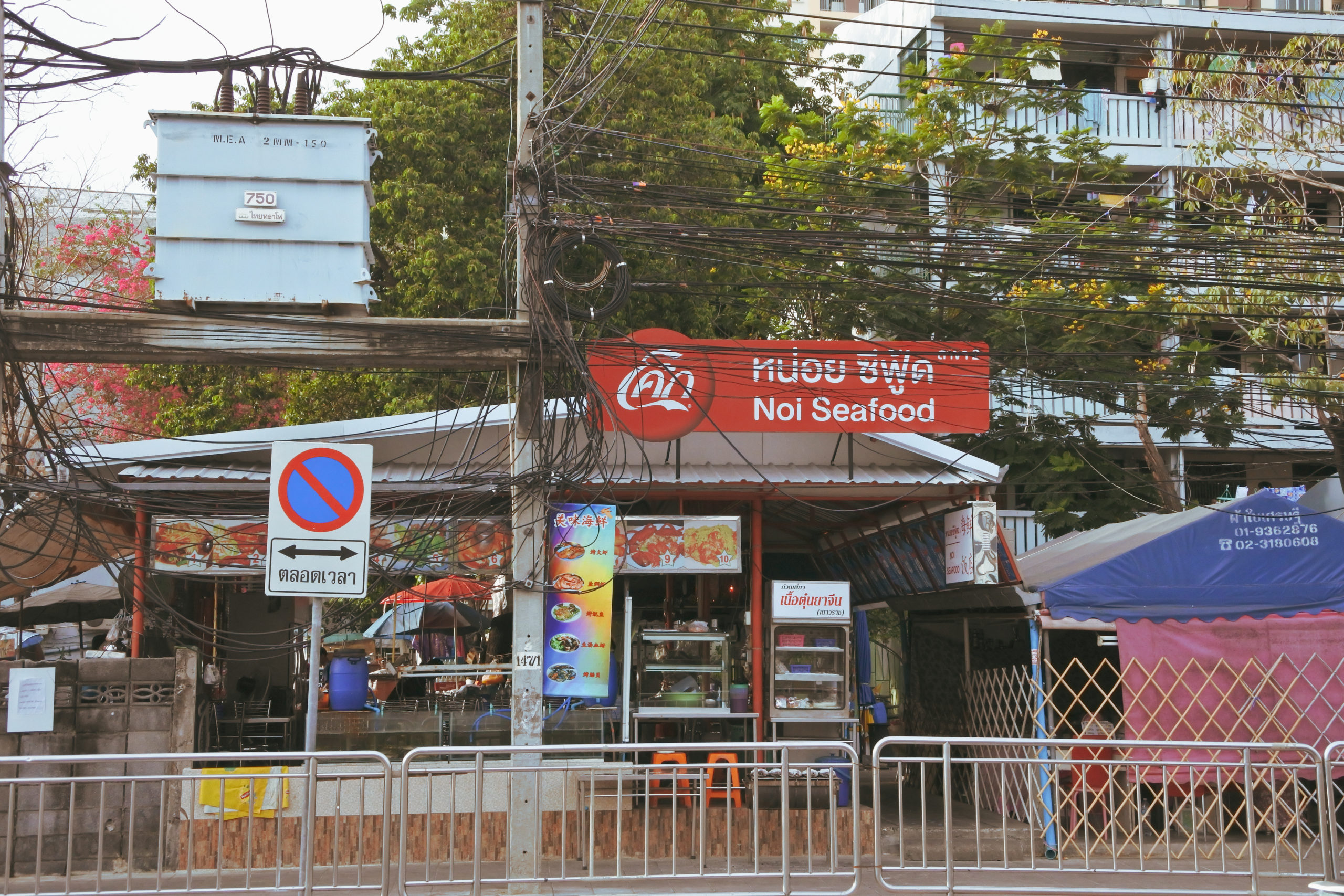 ภาพหน้าร้าน “Noi Seafood” นี้เตือนให้ผมคิดถึงมื้อค่ำที่แสนอร่อย การได้นั่งทานอาหารบนเก้าอี้พลาสติกริมถนนข้างเสาไฟฟ้า เป็นประสบการณ์ที่ “หรูหรา” ในแง่ของความรู้สึกมากครับ อาหารทะเลที่นี่สดมาก และน้ำจิ้มซีฟู้ดรสเผ็ดจัดจ้านก็ทำให้ผมหยุดกินไม่ได้จริงๆ